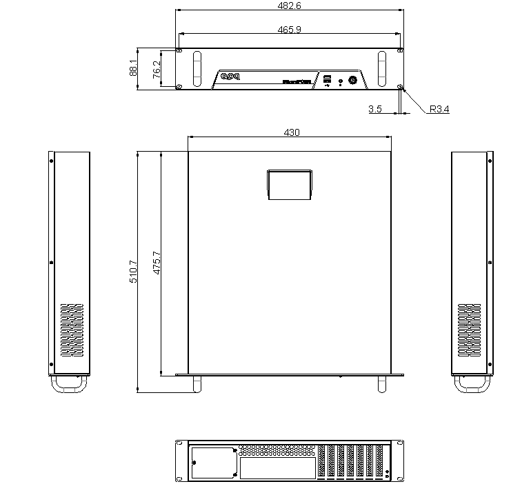 | ? | Dimensions | 482.6mm(L) * 475.7mm(W) * 88.1mm(H) |