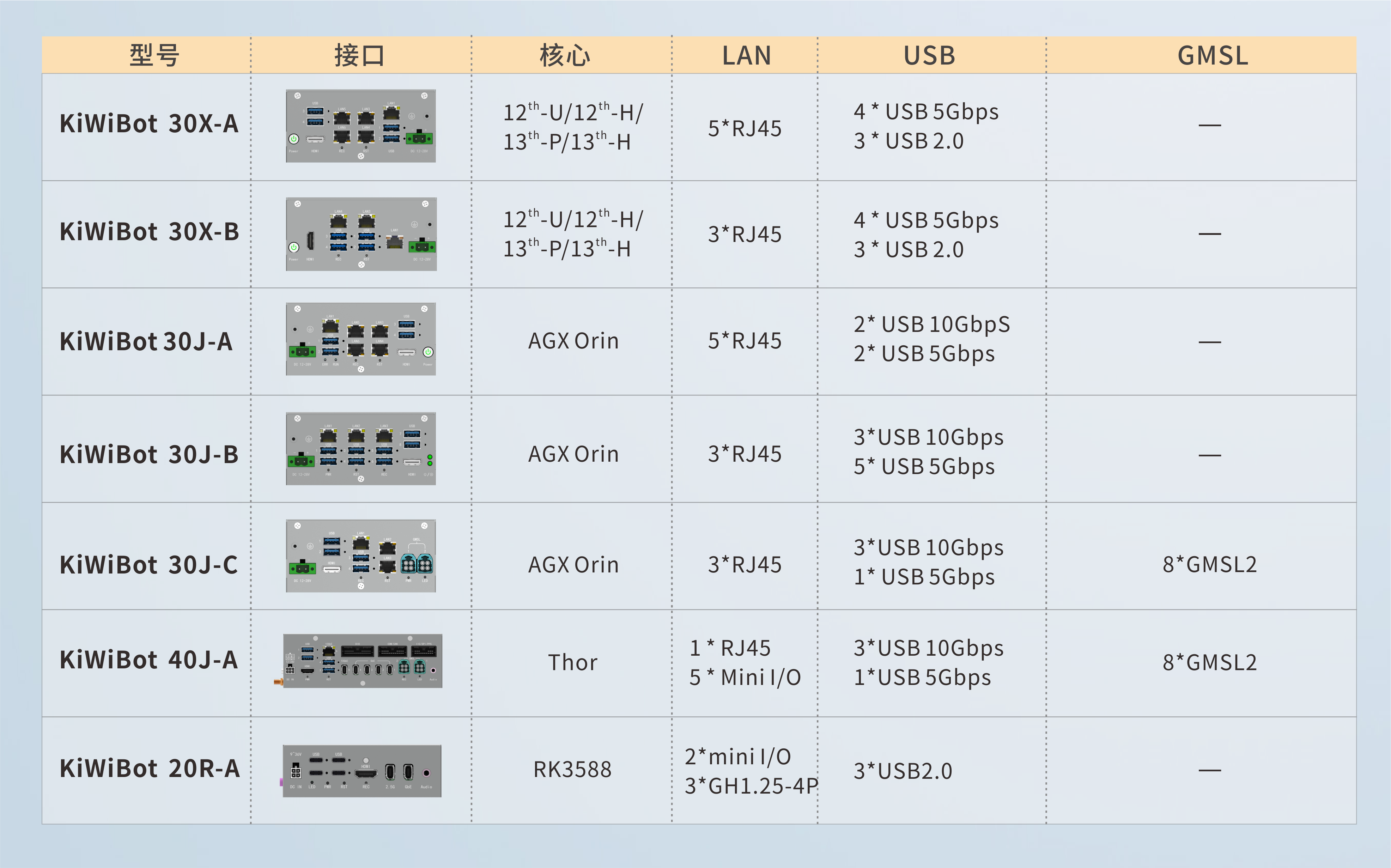 從第一代的KiWiBot50,為某頭部機器人客戶定制;到第二代設計成更為小巧緊湊,X86+Orin靈活搭配的KiWiBot30系列,再到下一代超強算控一體的KiWiBot40,以及基于RK3588開發的高性價比小腦KiWiBot20,阿普奇的KiWiBot產品體系實現了從高端到主流,從通用控制器到專業控制器的全面升級。